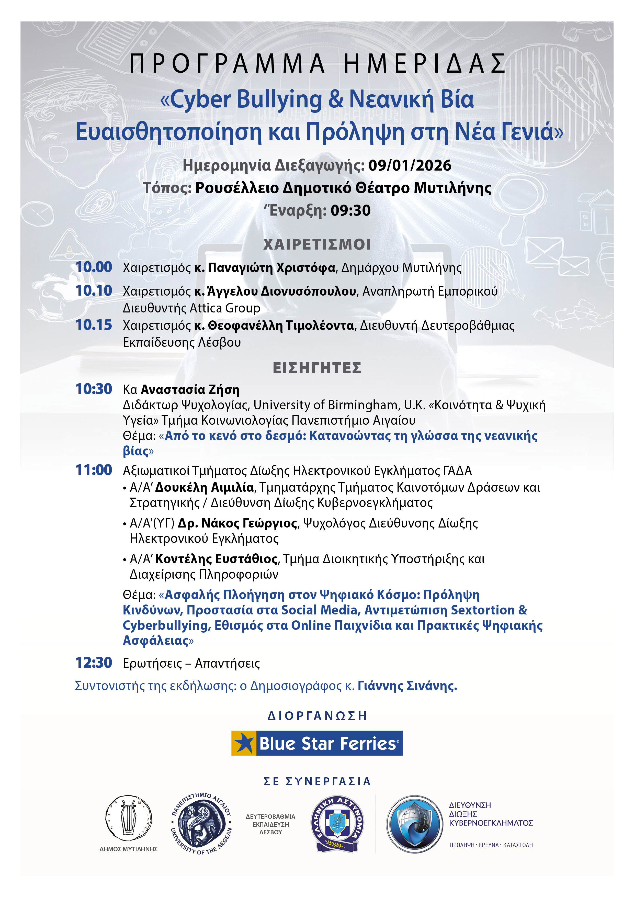 «Cyber Bullying & Νεανική Βία – Ευαισθητοποίηση και Πρόληψη στη Νέα Γενιά»